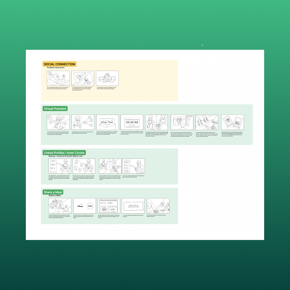 I’ve organized sprints to co-create with stakeholders, executives, users, and prospective customers alike to create UX experiences informed by both qualitative and quantitative data for Disney+.