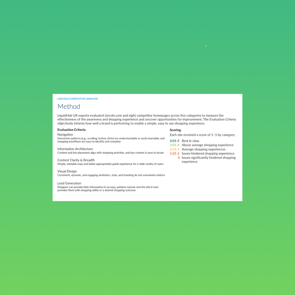 Competitor heuristic analysis of Lincoln’s website and how the experience compares to other luxury car brands like Tesla, BMW, Mercedes Benz and more